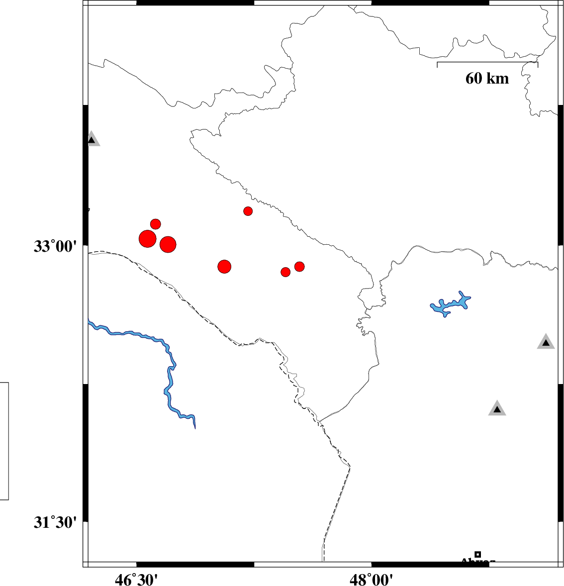 2014/08/17 | 15:35:13.9 | 20:05:13.9 | 32.78 | 47.69 | 18 | ML3 | Ilam Province, 27 km South-East of Abdanan | ||