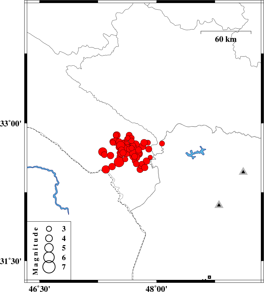 2014/08/17 15:35:13.9 20:05:13.9 32.7847.6918 ML3 Ilam Province, 27 km South-East of Abdanan