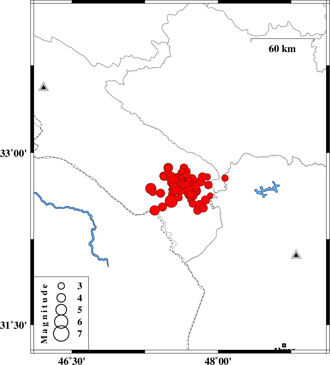 2014/08/18 16:23:15.2 20:53:15.2 32.7647.714 ML3 Ilam Province, 29 km South-East of Abdanan