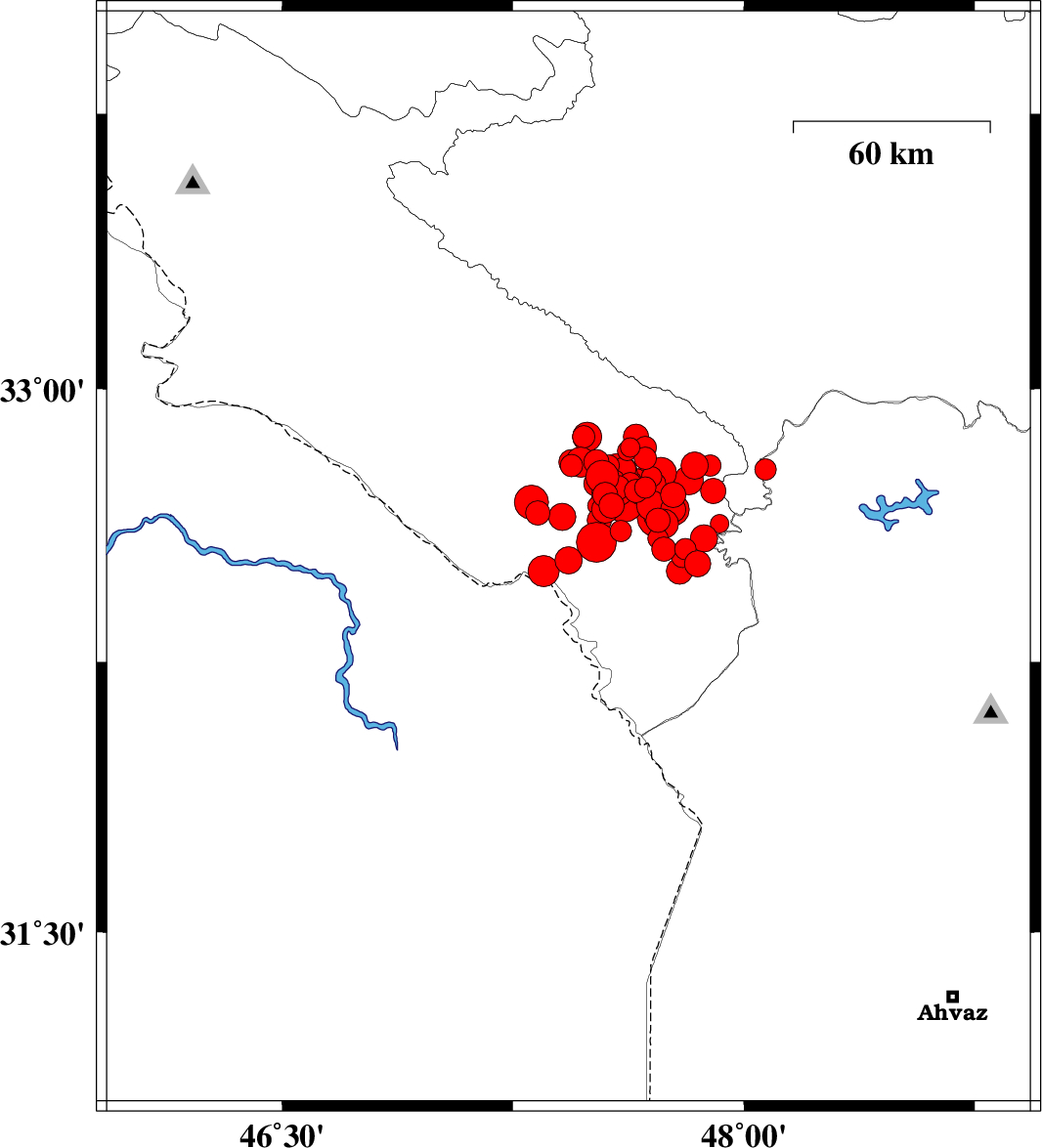 2014/08/18 16:23:15.2 20:53:15.2 32.7647.714 ML3 Ilam Province, 29 km South-East of Abdanan