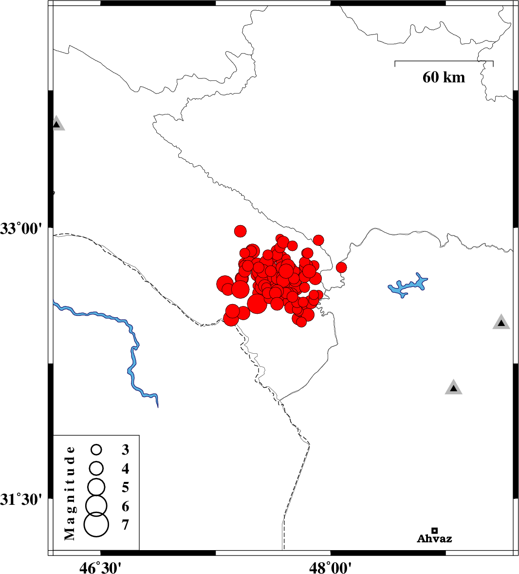 | 2014/08/19 | 00:28:55.7 | 04:58:55.7 | 32.76 | 47.56 | 14 | ML4 | Ilam Province, 21 km South of Abdanan | ||