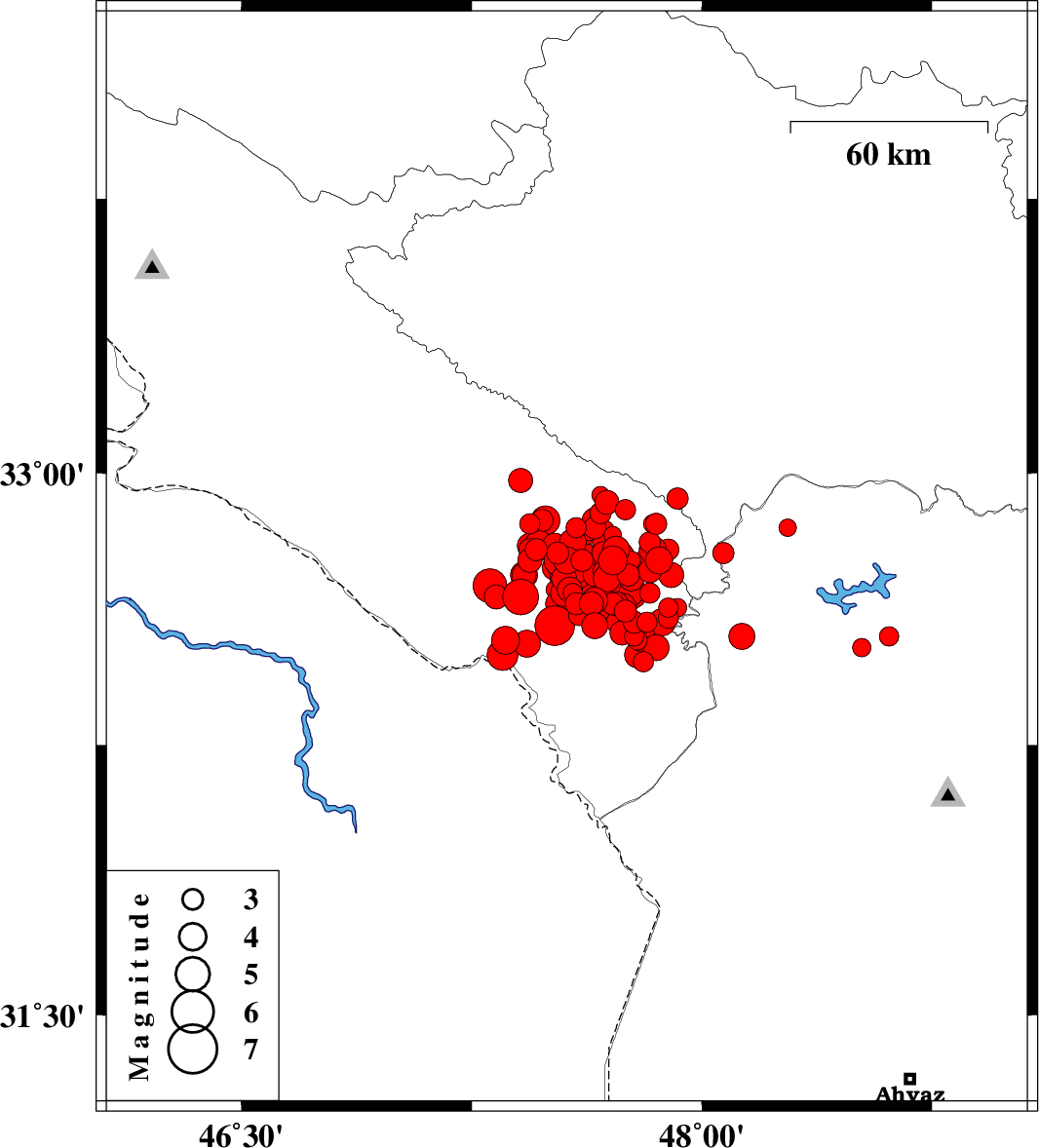| 2014/08/19 | 00:28:55.7 | 04:58:55.7 | 32.76 | 47.56 | 14 | ML4 | Ilam Province, 21 km South of Abdanan | ||