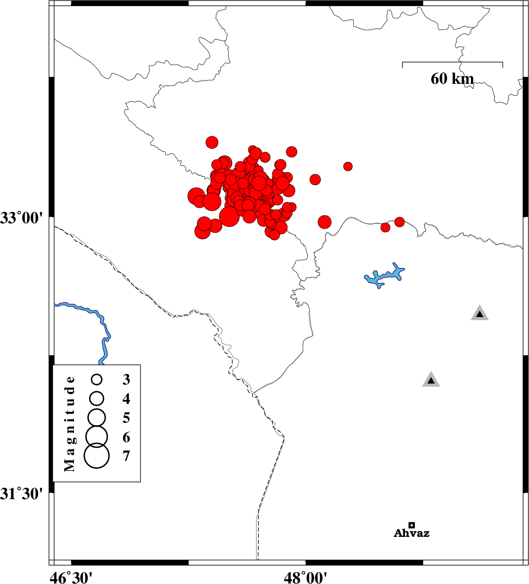 | 2014/08/19 | 00:28:55.7 | 04:58:55.7 | 32.76 | 47.56 | 14 | ML4 | Ilam Province, 21 km South of Abdanan | ||