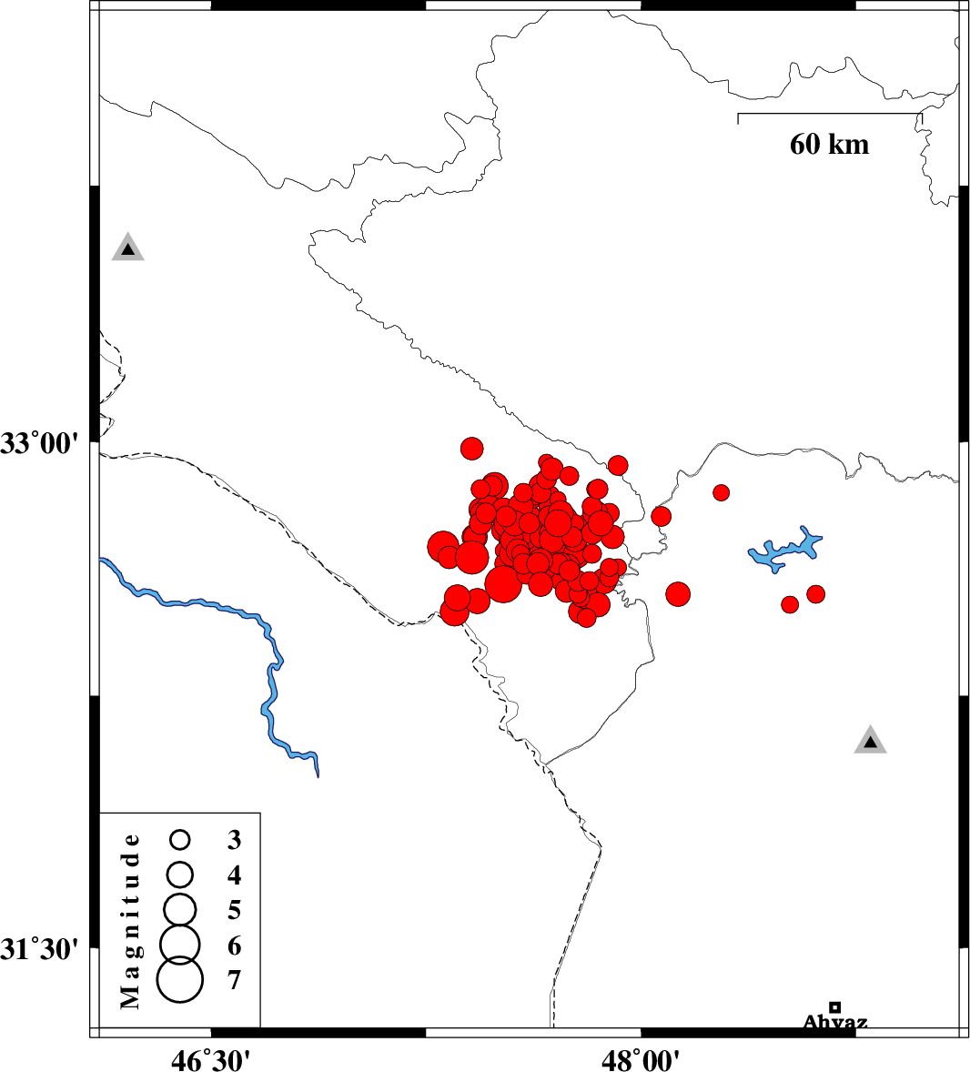 | 2014/08/19 | 00:28:55.7 | 04:58:55.7 | 32.76 | 47.56 | 14 | ML4 | Ilam Province, 21 km South of Abdanan | ||