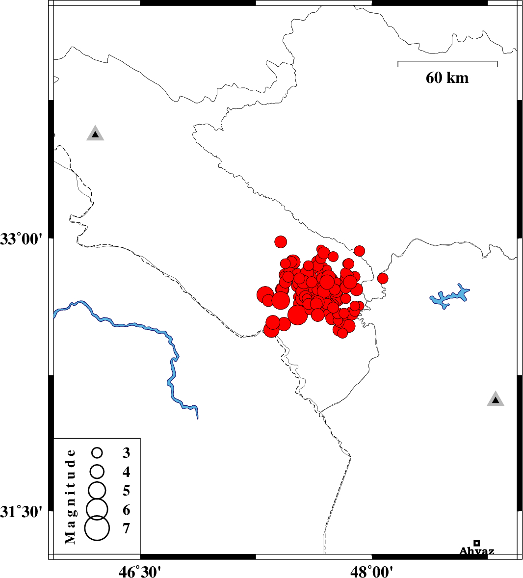 | 2014/08/18 | 11:51:35.5 | 16:21:35.5 | 32.77 | 47.59 | 14 | ML5.6 | Ilam Province, 22 km South-East of Abdanan | ||