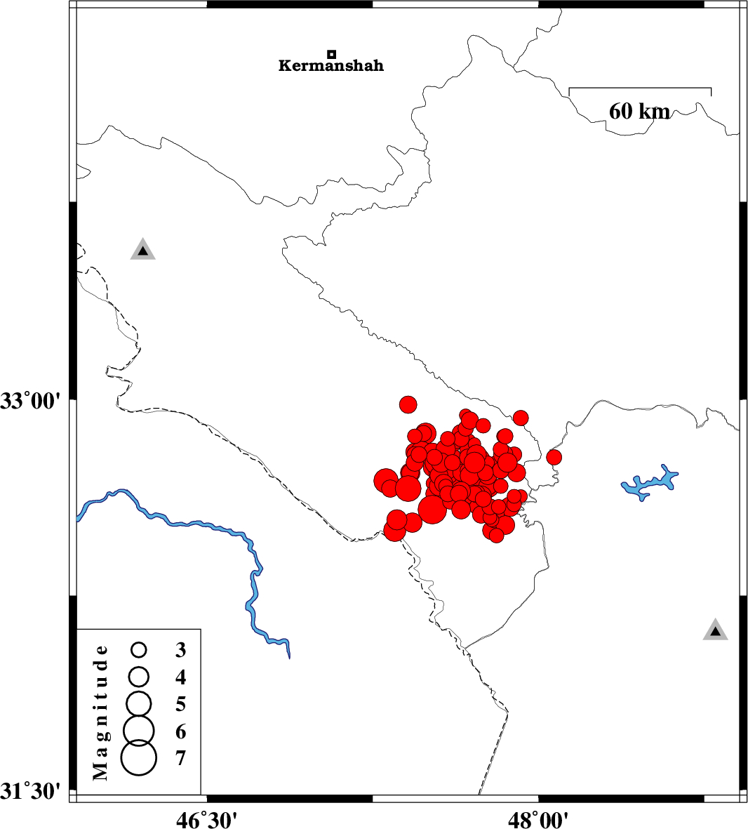 | 2014/08/18 | 11:51:35.5 | 16:21:35.5 | 32.77 | 47.59 | 14 | ML5.6 | Ilam Province, 22 km South-East of Abdanan | ||