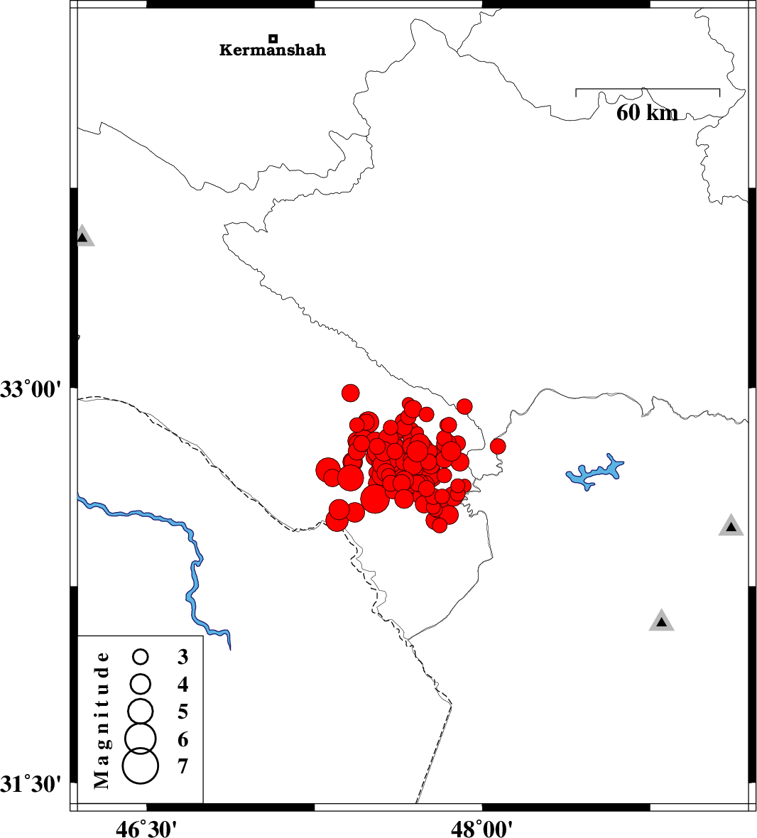 | 2014/08/19 | 00:28:55.7 | 04:58:55.7 | 32.76 | 47.56 | 14 | ML4 | Ilam Province, 21 km South of Abdanan | ||