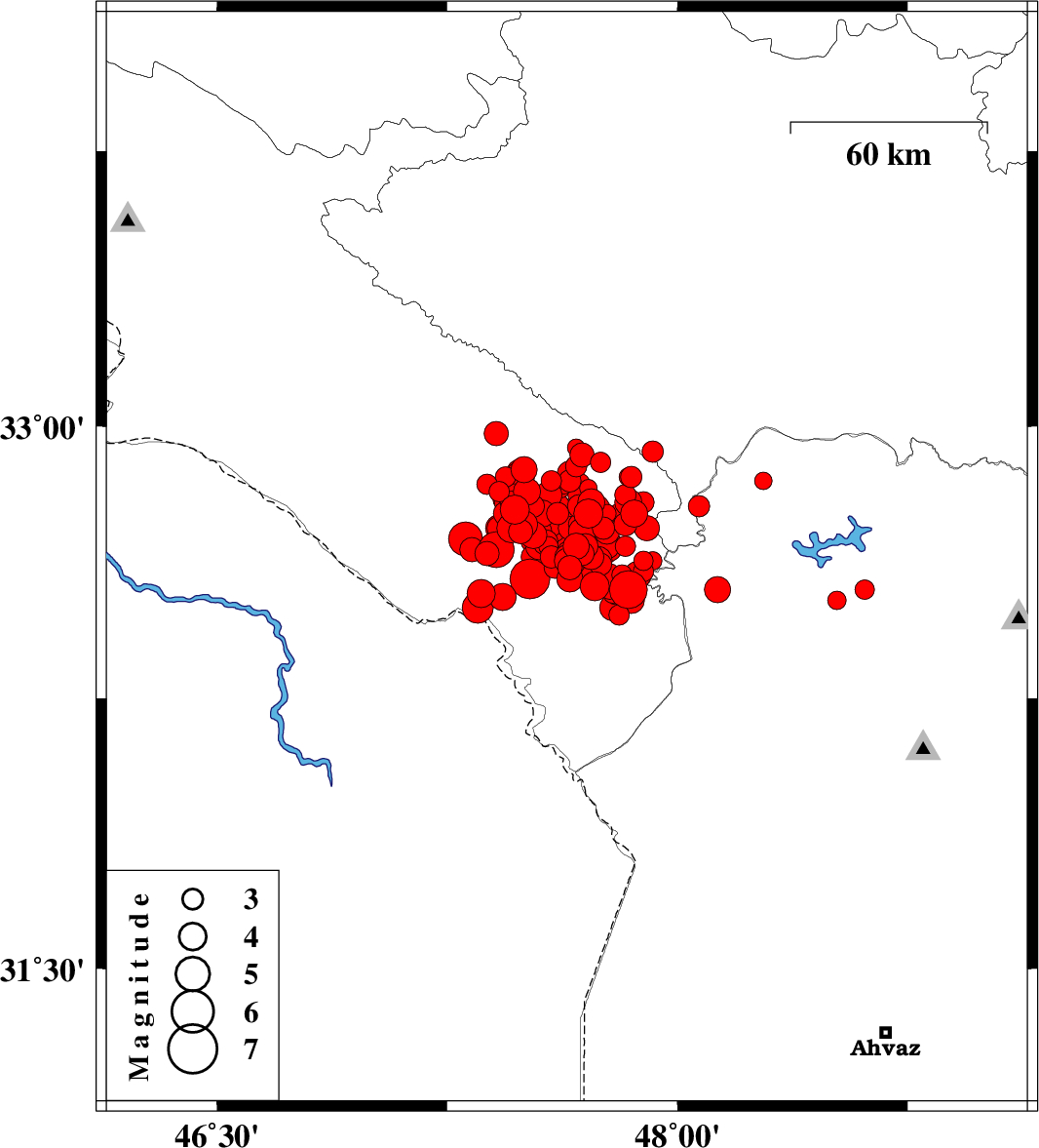 | 2014/08/19 | 00:28:55.7 | 04:58:55.7 | 32.76 | 47.56 | 14 | ML4 | Ilam Province, 21 km South of Abdanan | ||