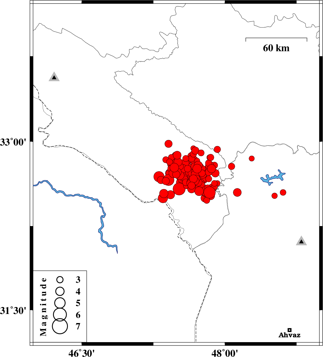 | 2014/08/19 | 00:28:55.7 | 04:58:55.7 | 32.76 | 47.56 | 14 | ML4 | Ilam Province, 21 km South of Abdanan | ||