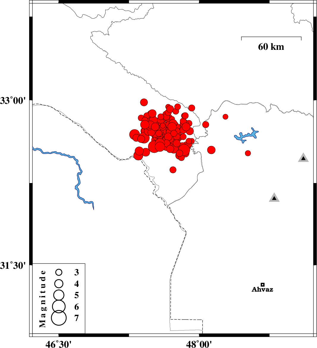 | 2014/08/19 | 00:28:55.7 | 04:58:55.7 | 32.76 | 47.56 | 14 | ML4 | Ilam Province, 21 km South of Abdanan | ||