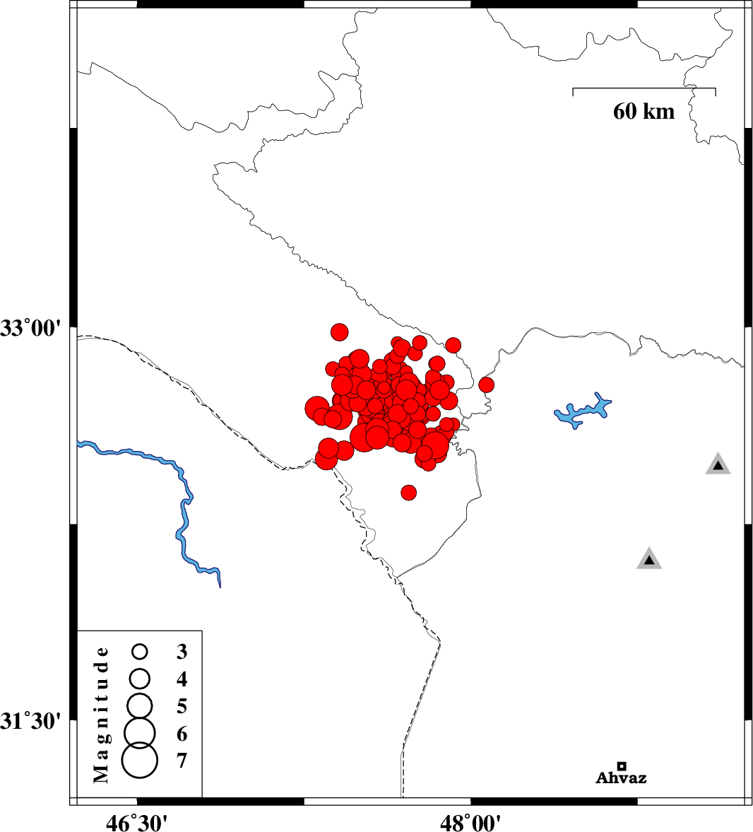 | 2014/08/19 | 00:28:55.7 | 04:58:55.7 | 32.76 | 47.56 | 14 | ML4 | Ilam Province, 21 km South of Abdanan | ||