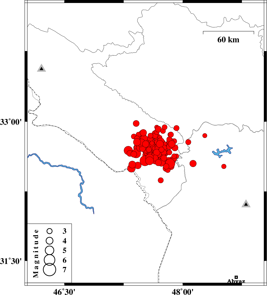 | 2014/08/20 | 06:43:11.9 | 11:13:11.9 | 32.82 | 47.51 | 14 | ML4 | Ilam Province, 13 km South of Abdanan | ||