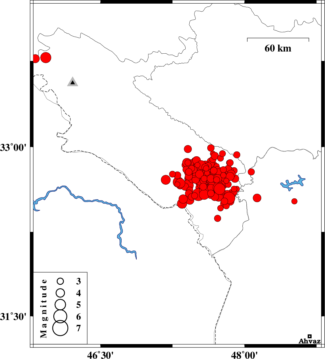 | 2014/08/19 | 00:28:55.7 | 04:58:55.7 | 32.76 | 47.56 | 14 | ML4 | Ilam Province, 21 km South of Abdanan | ||