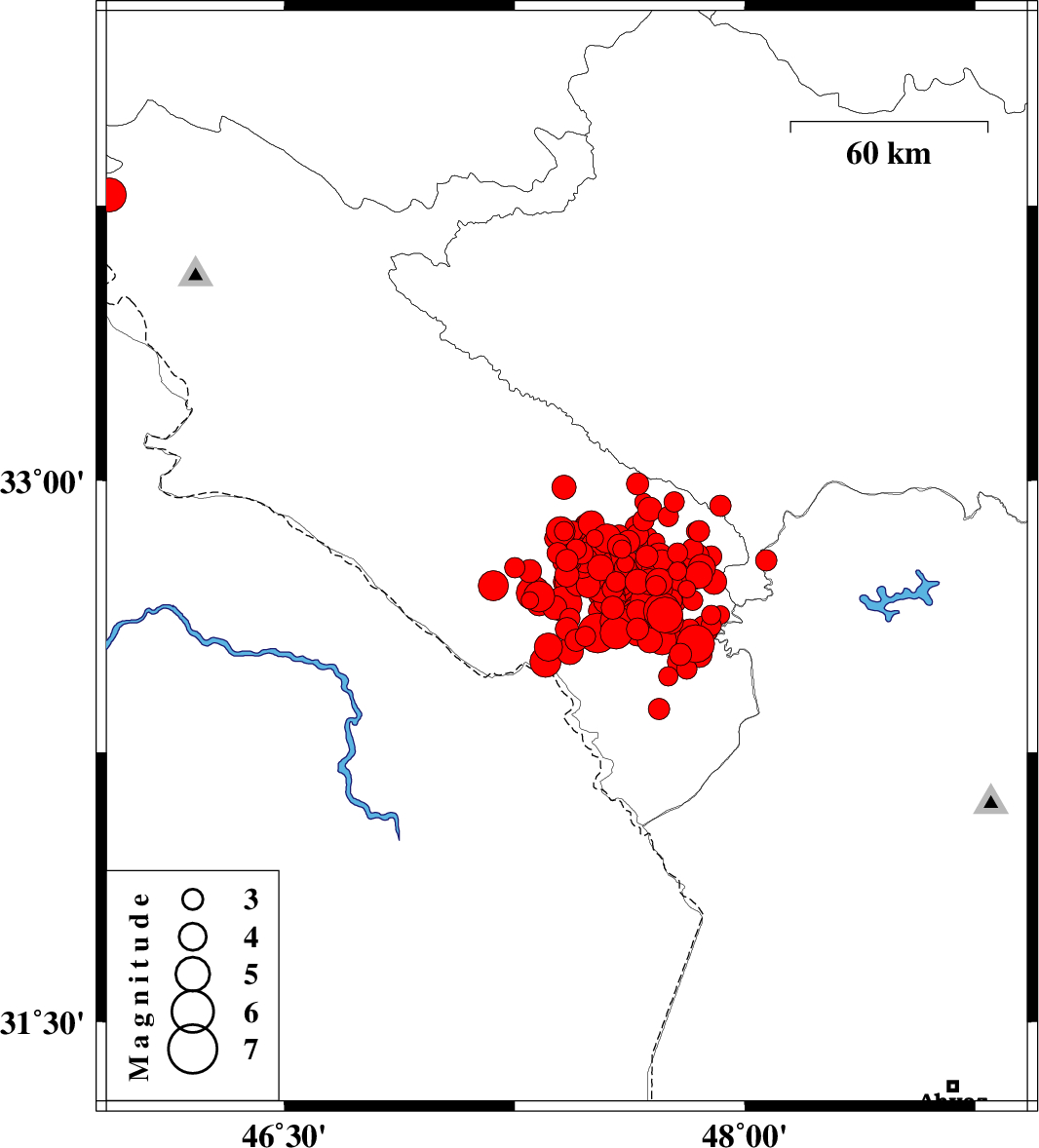 | 2014/08/19 | 00:28:55.7 | 04:58:55.7 | 32.76 | 47.56 | 14 | ML4 | Ilam Province, 21 km South of Abdanan | ||