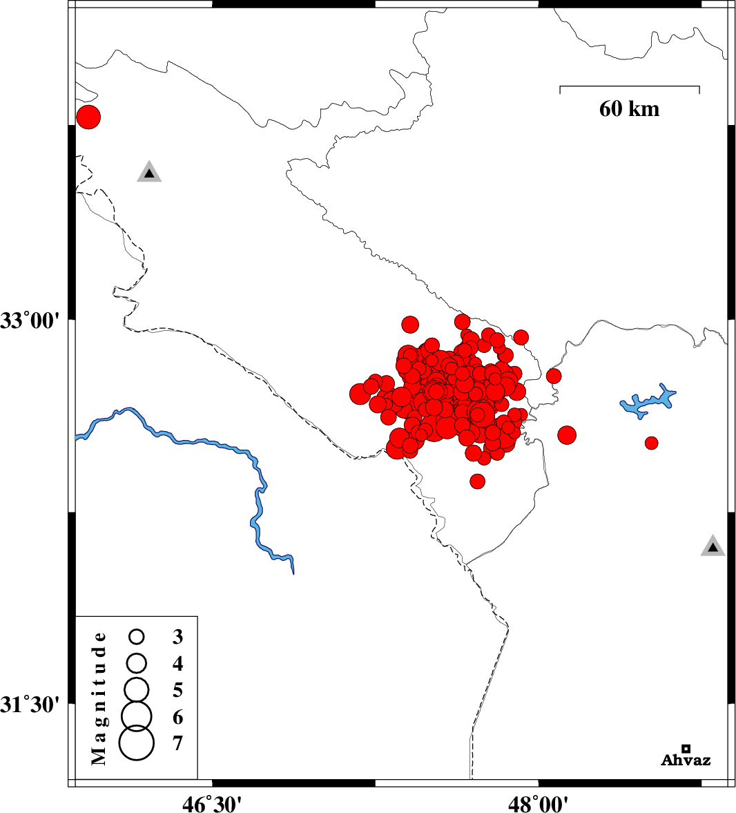 | 2014/08/19 | 00:28:55.7 | 04:58:55.7 | 32.76 | 47.56 | 14 | ML4 | Ilam Province, 21 km South of Abdanan | ||