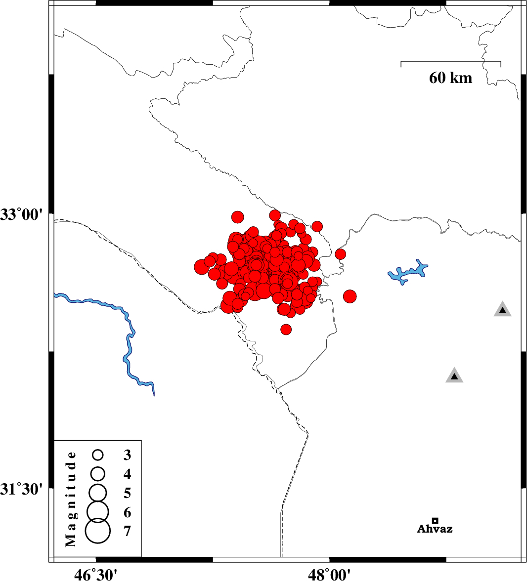 | 2014/08/19 | 00:28:55.7 | 04:58:55.7 | 32.76 | 47.56 | 14 | ML4 | Ilam Province, 21 km South of Abdanan | ||