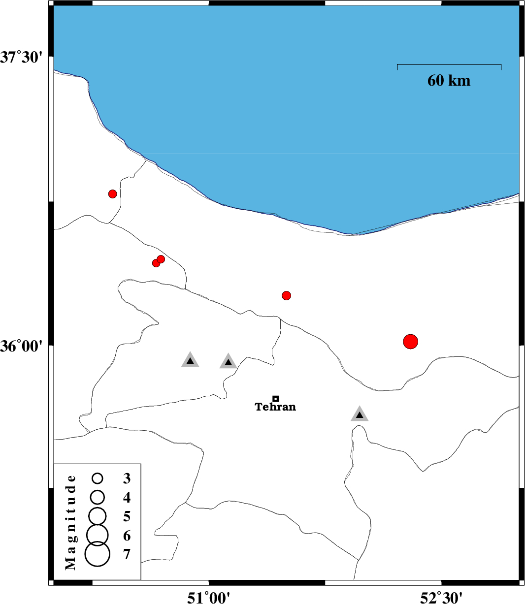 2014/08/06 | 13:37:06.5 | 18:07:06.5 | 36.43 | 50.66 | 15 | ML2.2 | Ghazvin Province, 52 km North of Hashtgerd |