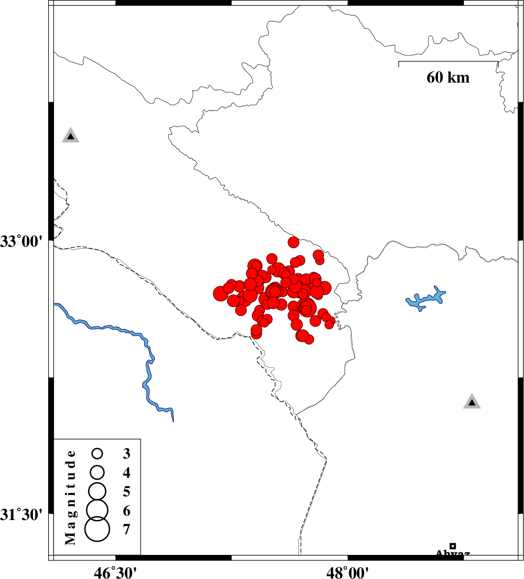 2014/08/26 01:18:10.1 05:48:10.1 32.8947.6914 ML3 Ilam Province, 21 km East of Abdanan