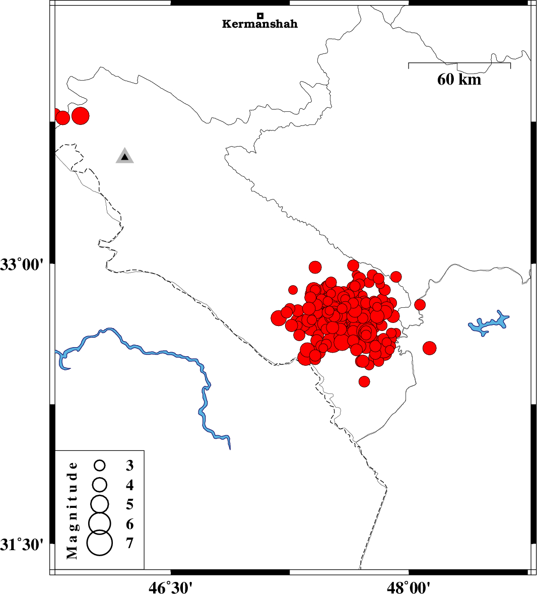 | 2014/08/19 | 00:28:55.7 | 04:58:55.7 | 32.76 | 47.56 | 14 | ML4 | Ilam Province, 21 km South of Abdanan | ||