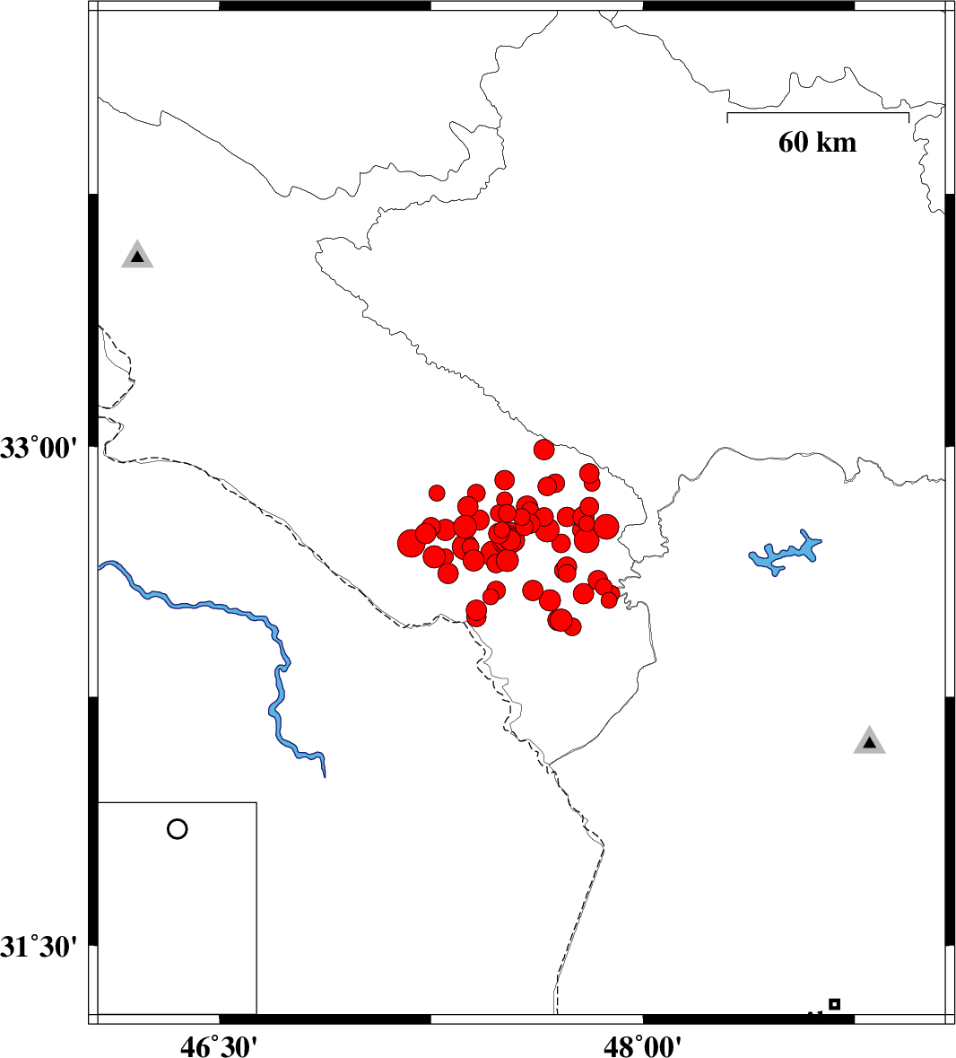 2014/09/01 04:05:23.9 08:35:23.9 32.7647.8714 ML4 Ilam Province, 46 km South-East of Pol-e dokhtar
