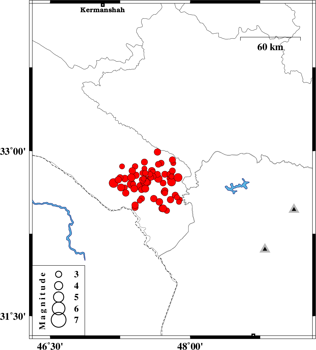 2014/08/26 | 01:31:15.9 | 06:01:15.9 | 32.65 | 47.48 | 40 | ML2.9 | Ilam Province, 22 km East of Dehloran | ||
