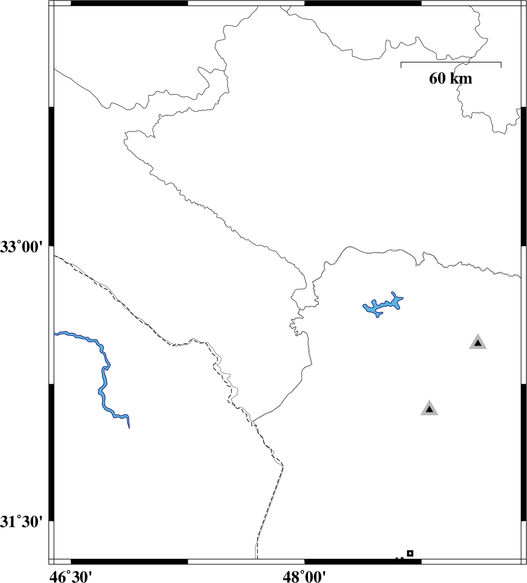 2014/08/26 | 01:31:15.9 | 06:01:15.9 | 32.65 | 47.48 | 40 | ML2.9 | Ilam Province, 22 km East of Dehloran | ||