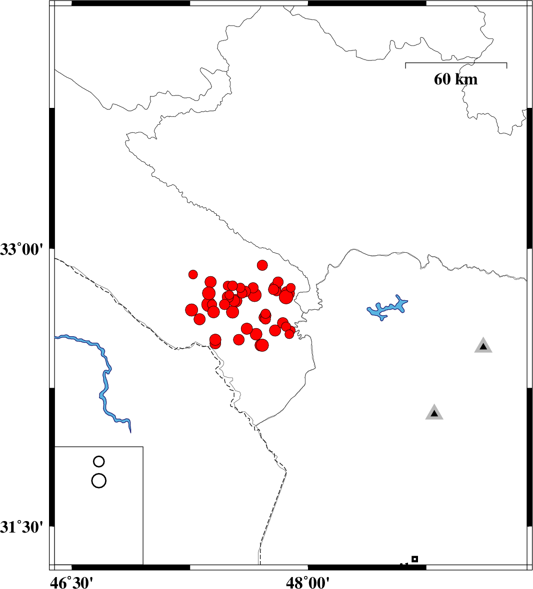 2014/08/31 | 19:32:01.6 | 00:02:01.6 | 32.76 | 47.58 | 14 | ML2.8 | Ilam Province, 21 km South-East of Abdanan | ||