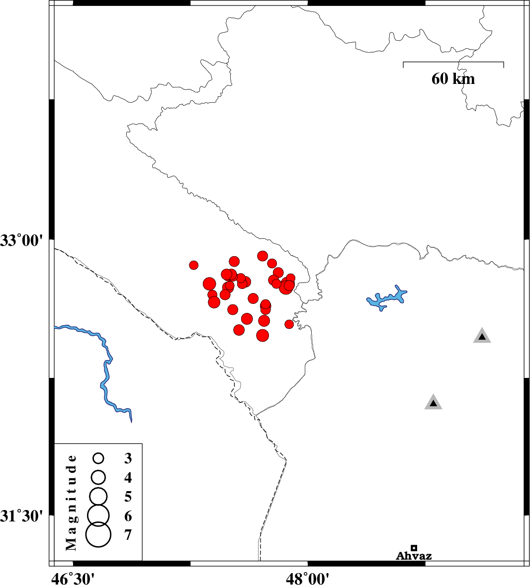| 2014/09/02 | 19:23:08.0 | 23:53:08.0 | 32.7 | 47.47 | 14 | ML3 | Ilam Province, 20 km East of Dehloran | ||