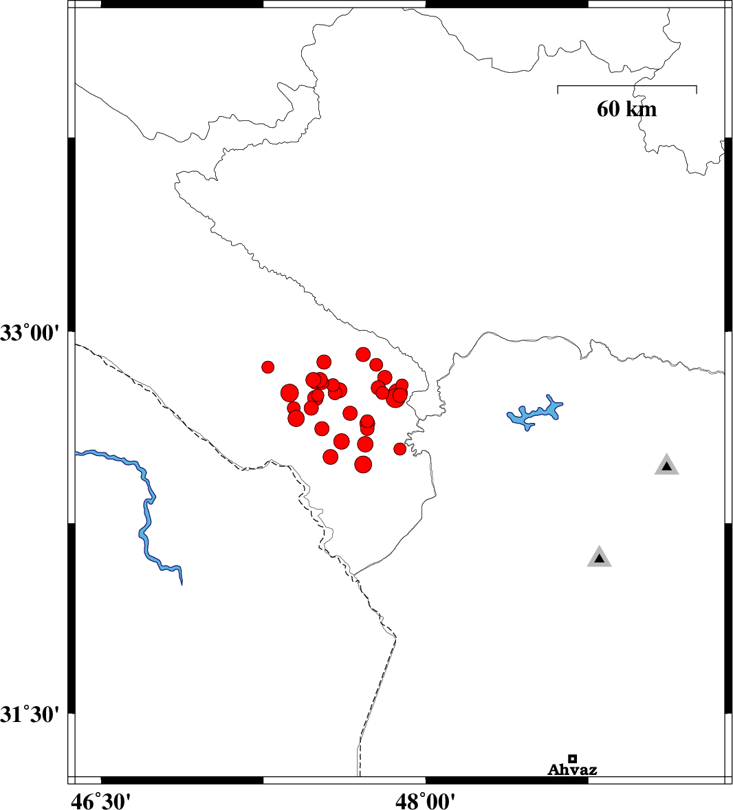 | 2014/08/30 | 08:08:52.1 | 12:38:52.1 | 32.77 | 47.6 | 14 | ML3.1 | Ilam Province, 21 km South-East of Abdanan | ||