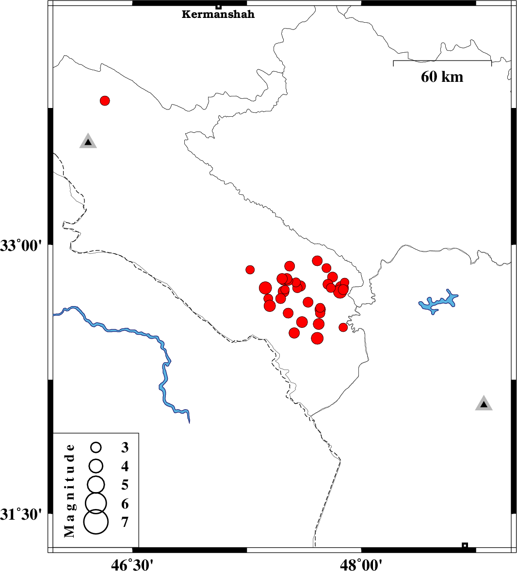 | 2014/09/01 | 04:05:23.9 | 08:35:23.9 | 32.76 | 47.87 | 14 | ML4 | Ilam Province, 46 km South-East of Pol-e dokhtar | ||