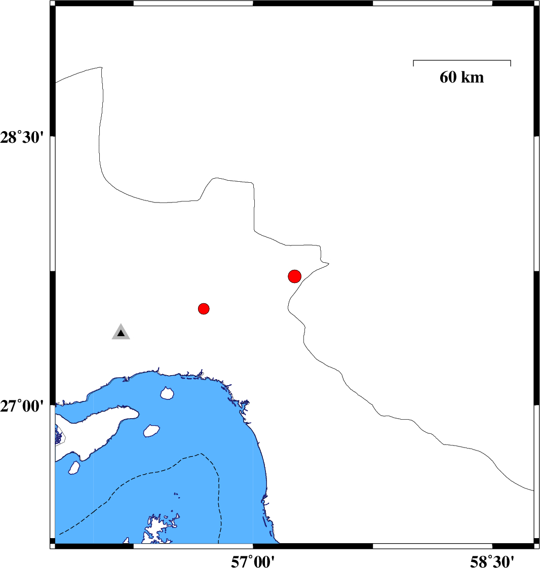 | 2014/09/12 | 00:57:52.0 | 05:27:52.0 | 27.54 | 56.69 | 28 | ML3.1 | Hormozgan Province, 56 km North-West of Dehbarez |