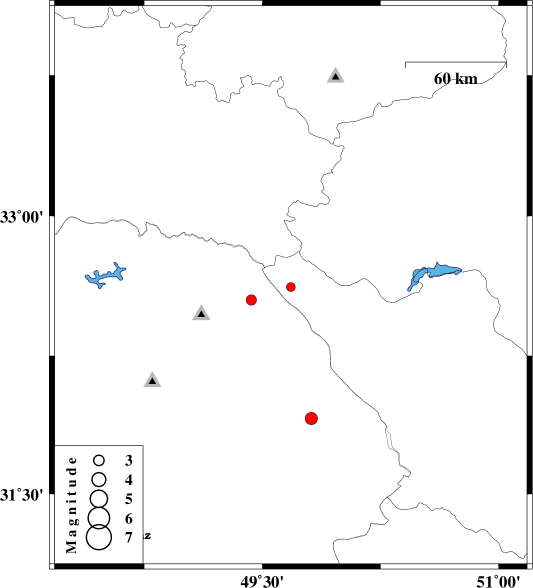 | 2014/08/22 | 09:52:39.1 | 14:22:39.1 | 31.91 | 49.81 | 14 | ML3.5 | Khoozestan Province, 10 km Izeh |