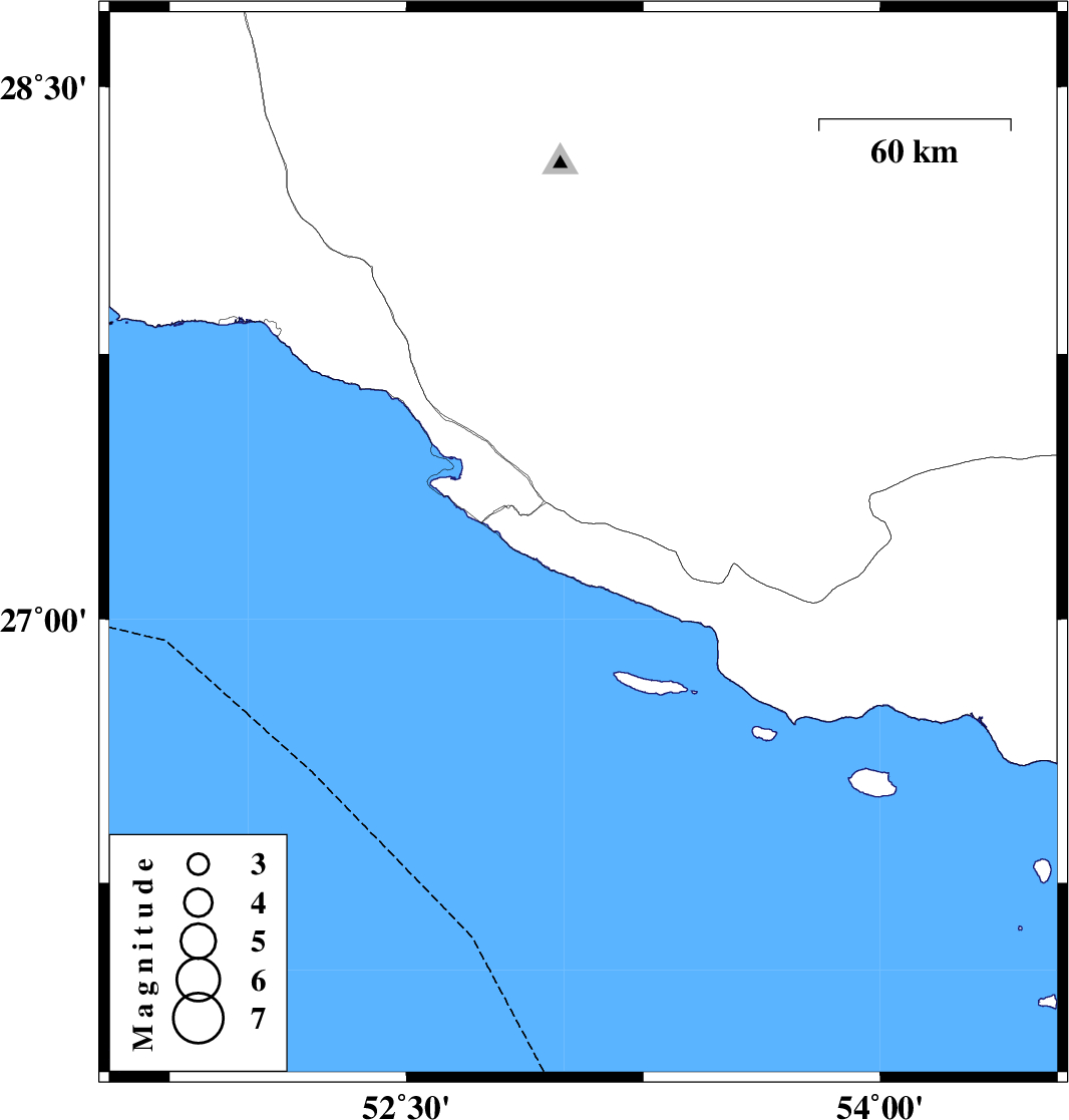 | 2014/09/13 | 00:29:12.9 | 04:59:12.9 | 27.21 | 53.06 | 18 | ML3 | Hormozgan Province, 17 km South-West of Lamerd |
