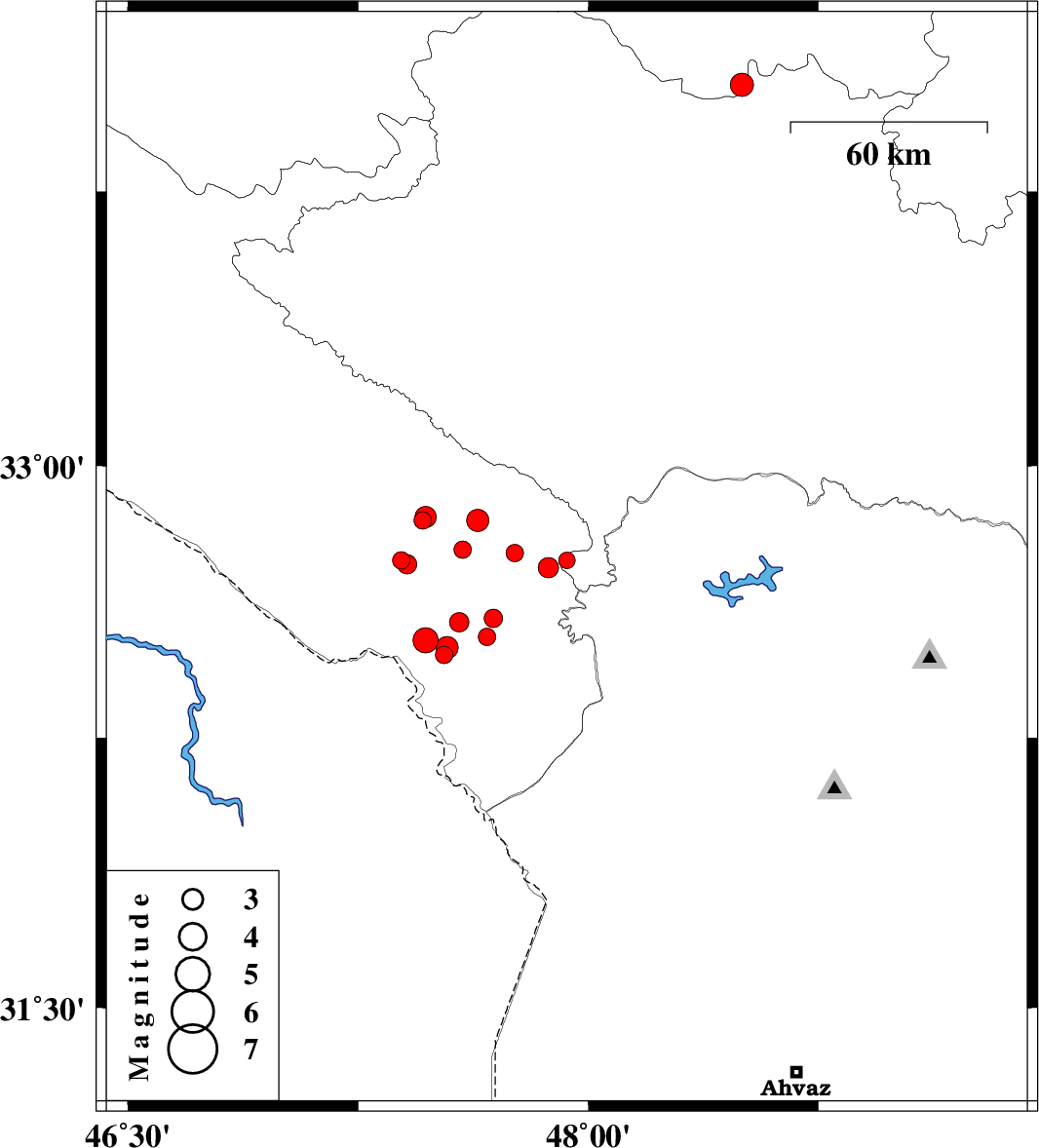 2014/09/12 | 15:17:29.3 | 19:47:29.3 | 32.5 | 47.54 | 18 | ML3.2 | Ilam Province, 34 km South-East of Dehloran | ||