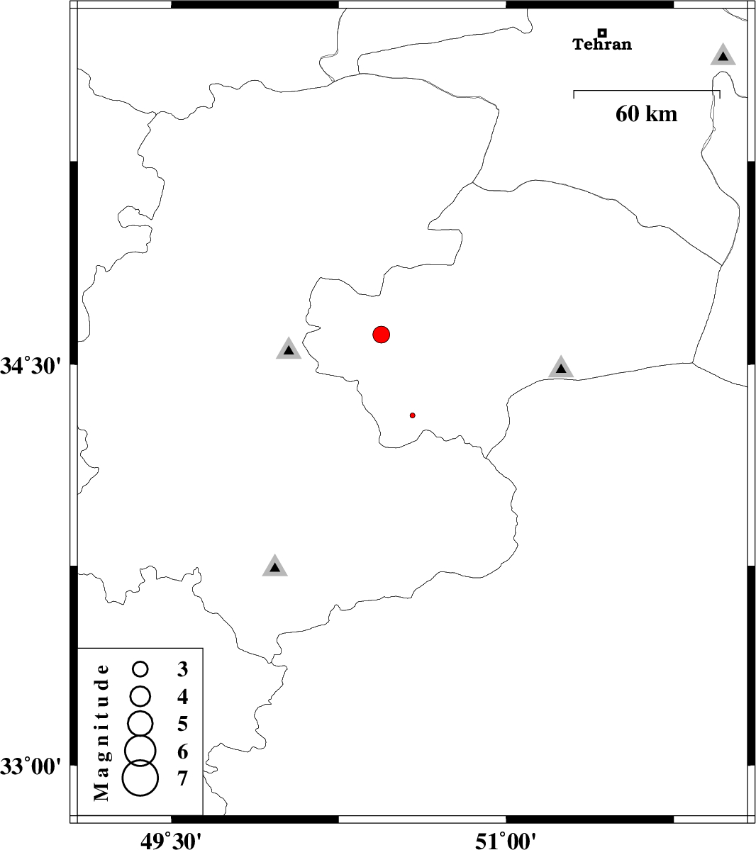 | 2014/09/05 | 08:36:09.8 | 13:06:09.8 | 34.61 | 50.44 | 15 | ML3.4 | Qom Province, 40 km West of Qom |