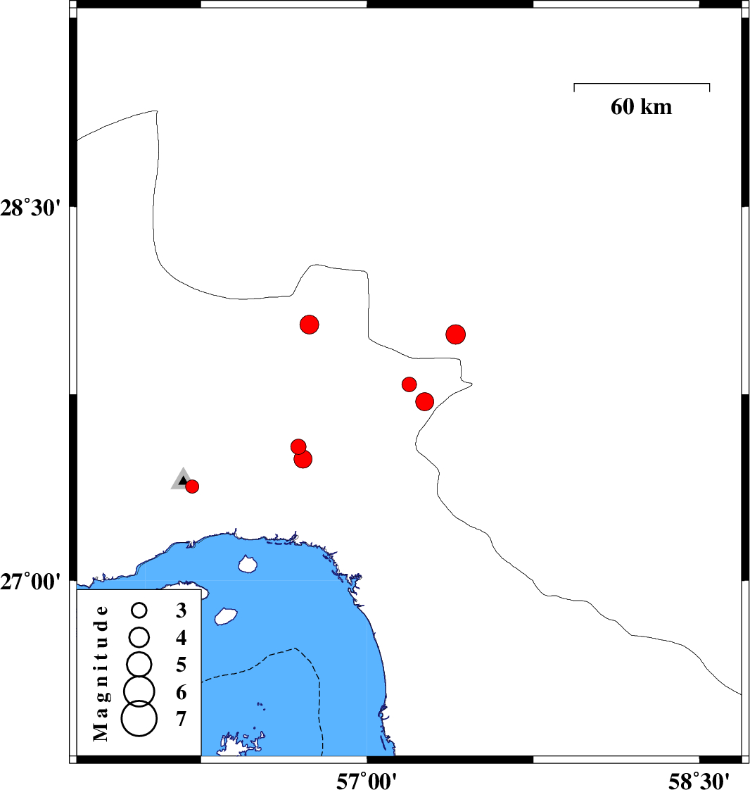 | 2014/09/05 | 01:13:55.0 | 05:43:55.0 | 27.49 | 56.71 | 16 | ML3.7 | Hormozgan Province, 52 km West of Dehbarez | ||