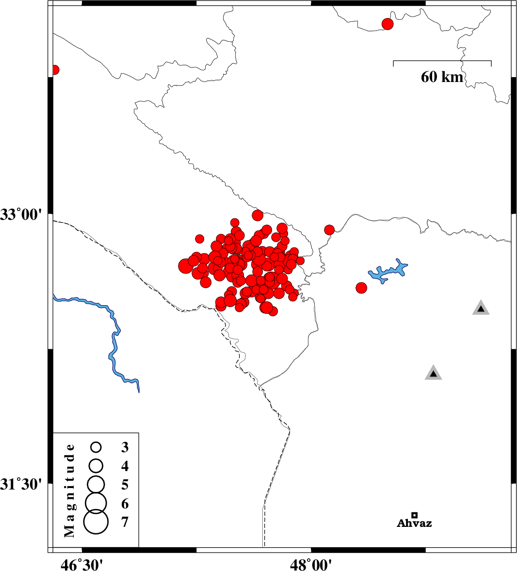 | 2014/08/26 | 01:18:10.1 | 05:48:10.1 | 32.89 | 47.69 | 14 | ML3 | Ilam Province, 21 km East of Abdanan | ||