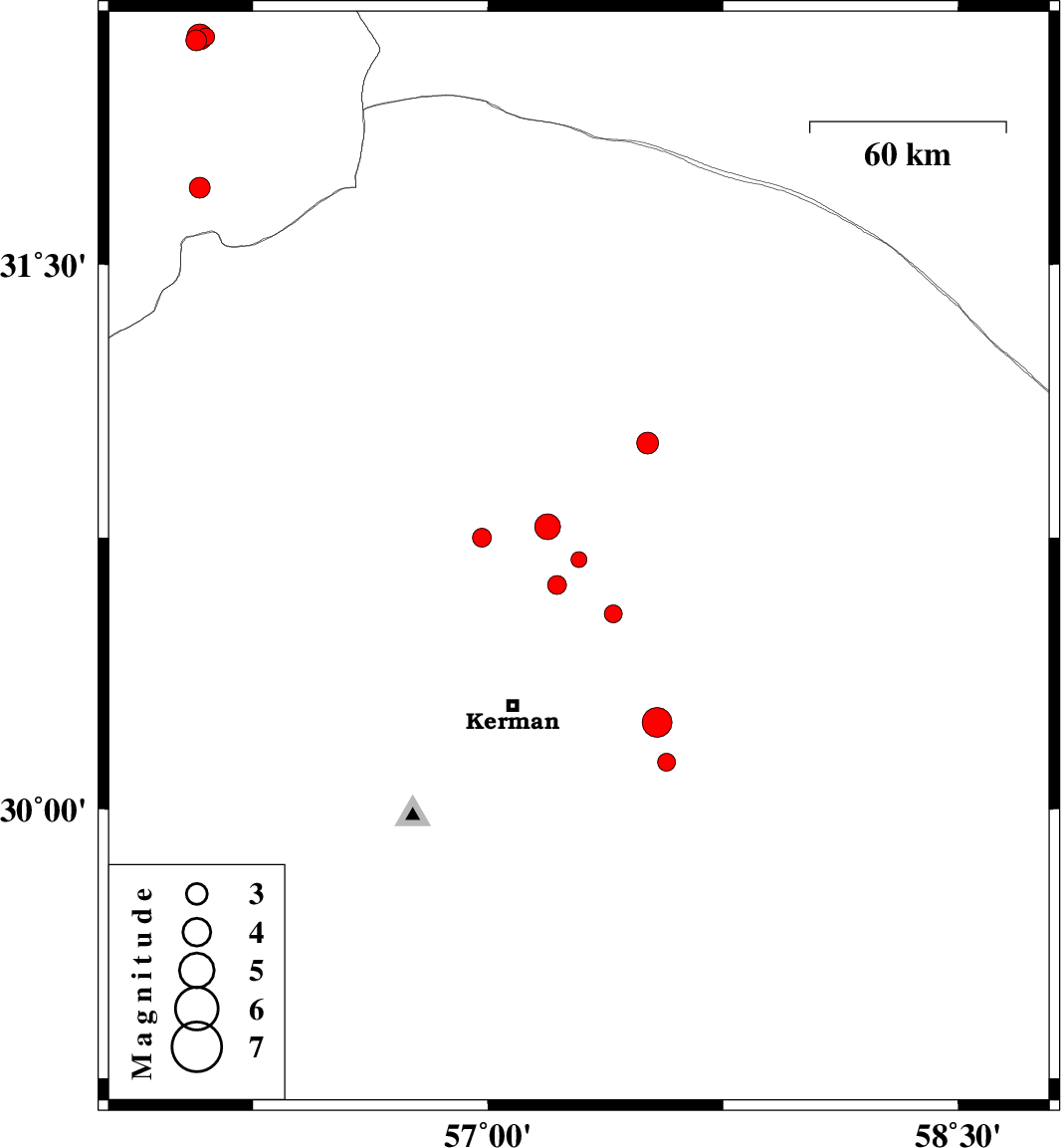 2014/09/22 06:26:05.9 09:56:05.9 30.7857.1914 ML3.7 Kerman Province, 55 km North-East of Kerman