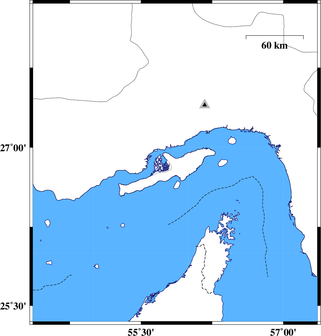 | 2014/09/24 | 14:25:45.4 | 17:55:45.4 | 26.85 | 55.86 | 7 | ML3.7 | Persian Gulf, 42 km South-West of Qeshm | ||