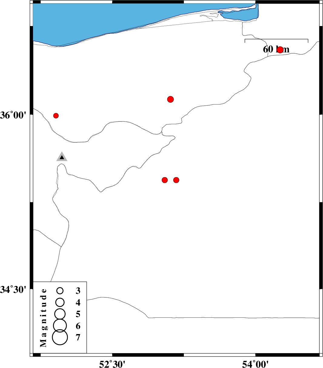 | 2014/09/24 | 14:47:30.4 | 18:17:30.4 | 35.44 | 53.17 | 14 | ML2.7 | Semnan Province, 25 km South-West of Semnan | ||
