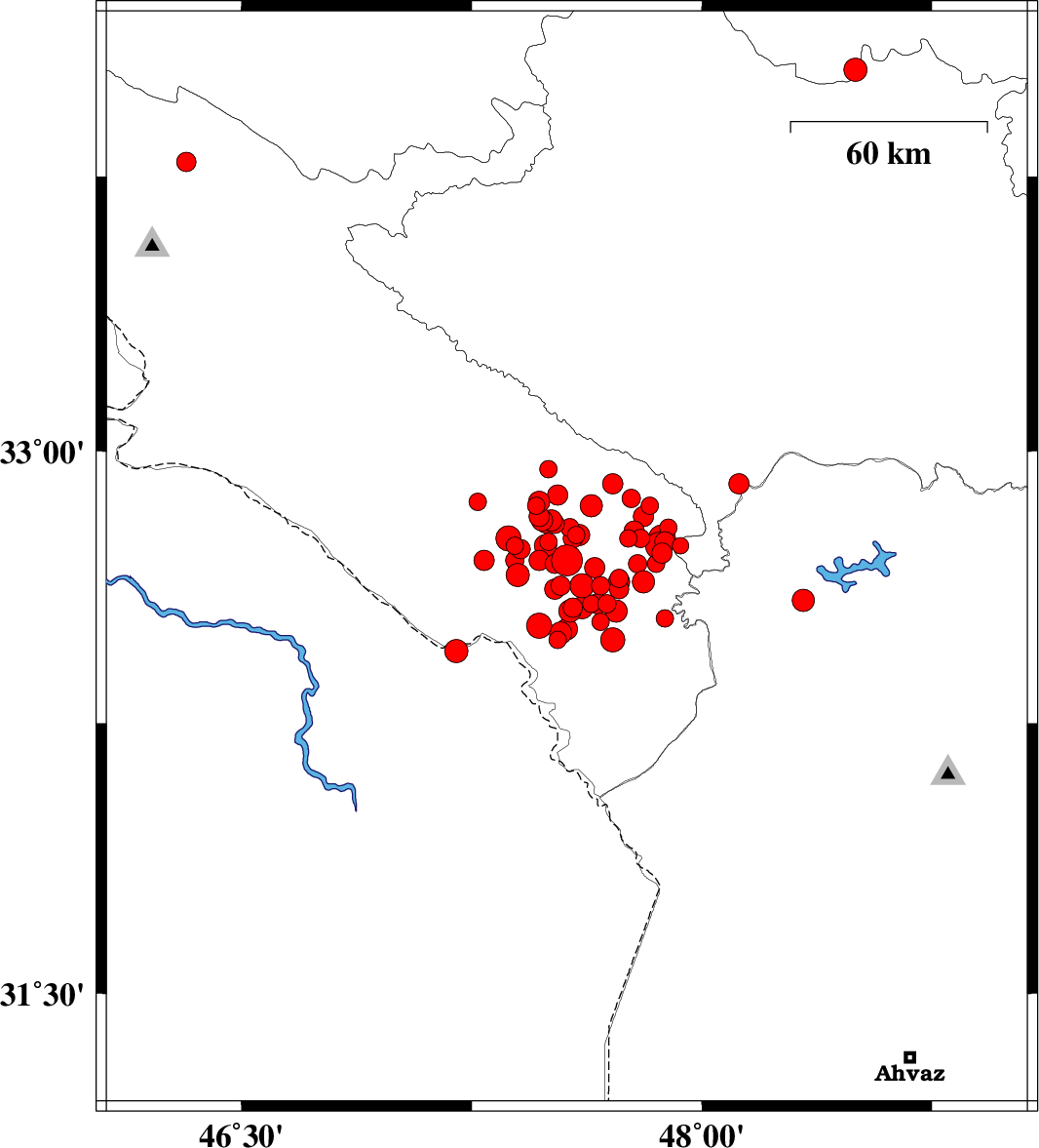 2014/09/28 | 00:00:40.1 | 03:30:40.1 | 32.7 | 47.56 | 14 | ML4.5 | Ilam Province, 28 km East of Dehloran | ||