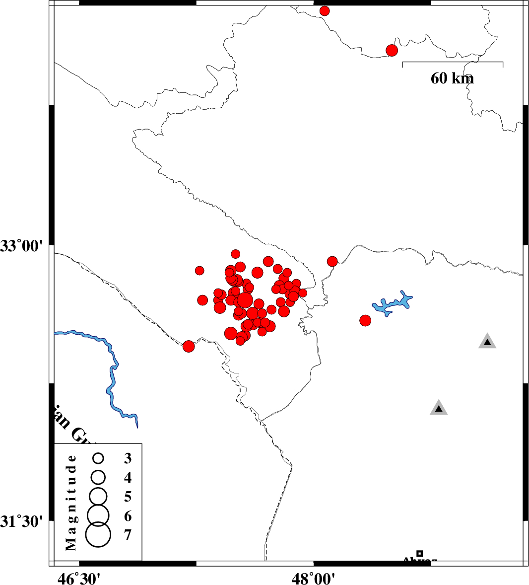 | 2014/09/01 | 04:05:23.9 | 08:35:23.9 | 32.76 | 47.87 | 14 | ML4 | Ilam Province, 46 km South-East of Pol-e dokhtar | ||