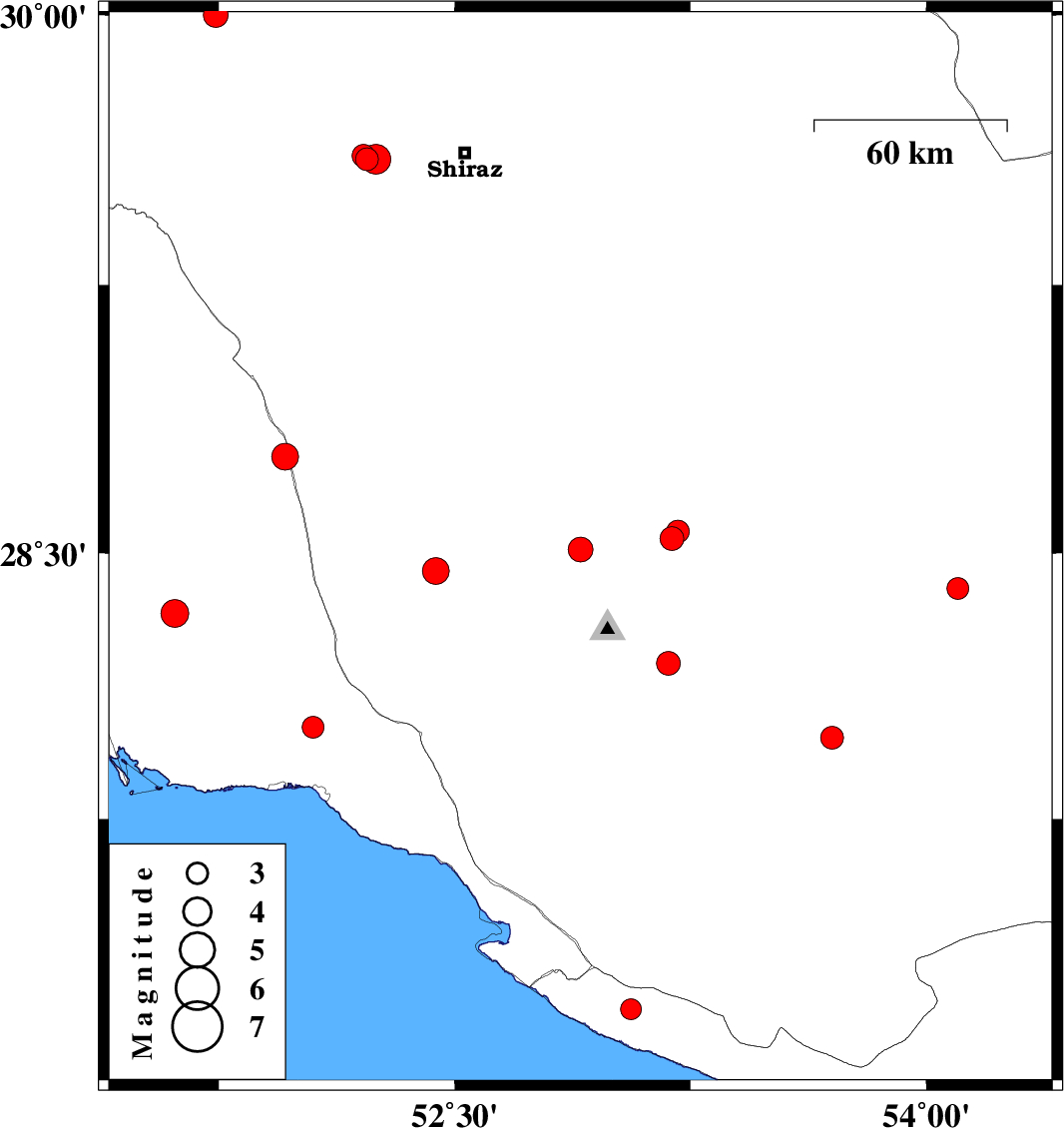 | 2014/10/04 | 21:13:20.0 | 00:43:20.0 | 27.98 | 53.7 | 16 | ML3.3 | Fars Province, 60 km South-East of Jahrom | ||