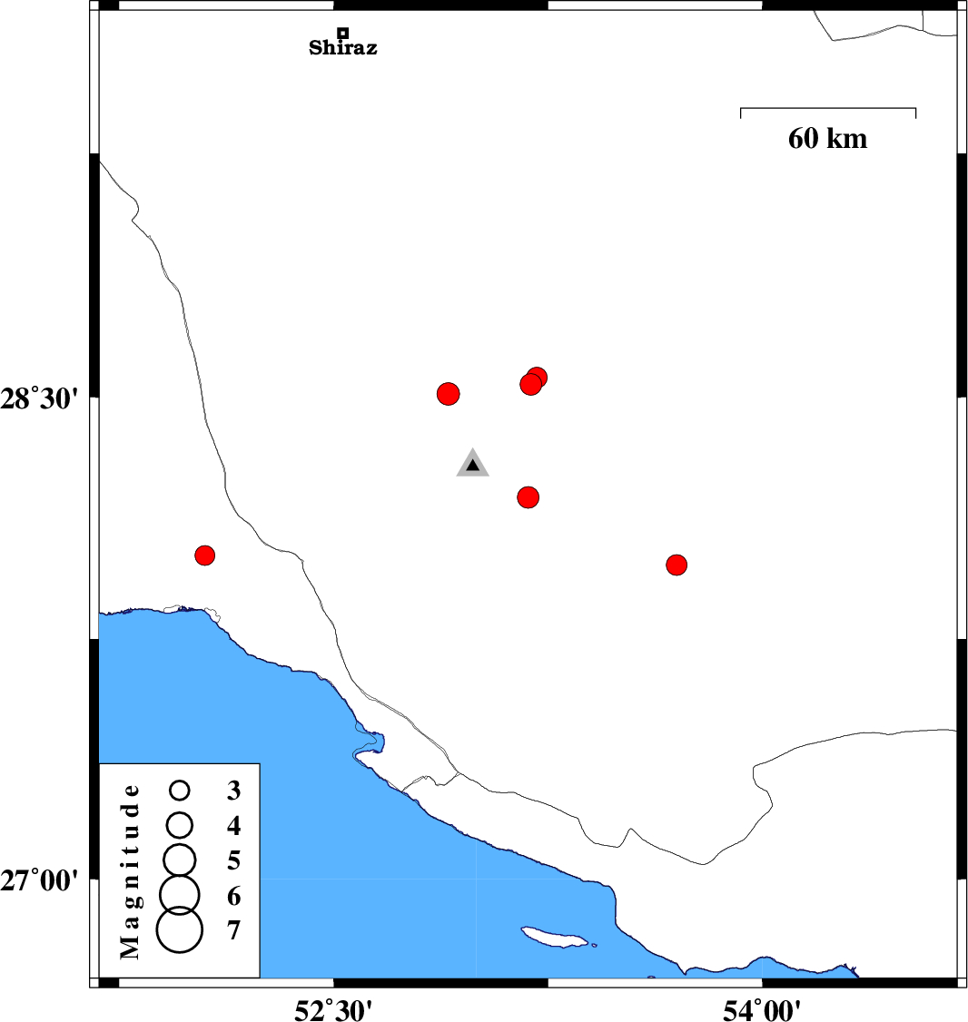 | 2014/10/04 | 21:13:20.0 | 00:43:20.0 | 27.98 | 53.7 | 16 | ML3.3 | Fars Province, 60 km South-East of Jahrom | ||