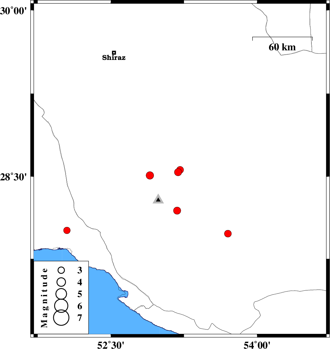 | 2014/10/04 | 21:13:20.0 | 00:43:20.0 | 27.98 | 53.7 | 16 | ML3.3 | Fars Province, 60 km South-East of Jahrom | ||