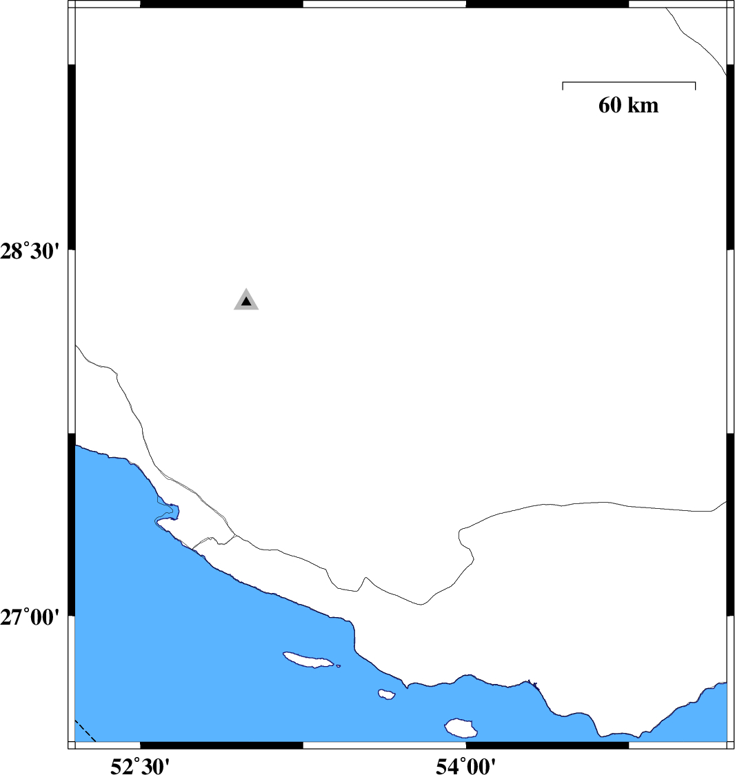 | 2014/10/04 | 21:13:20.0 | 00:43:20.0 | 27.98 | 53.7 | 16 | ML3.3 | Fars Province, 60 km South-East of Jahrom | ||