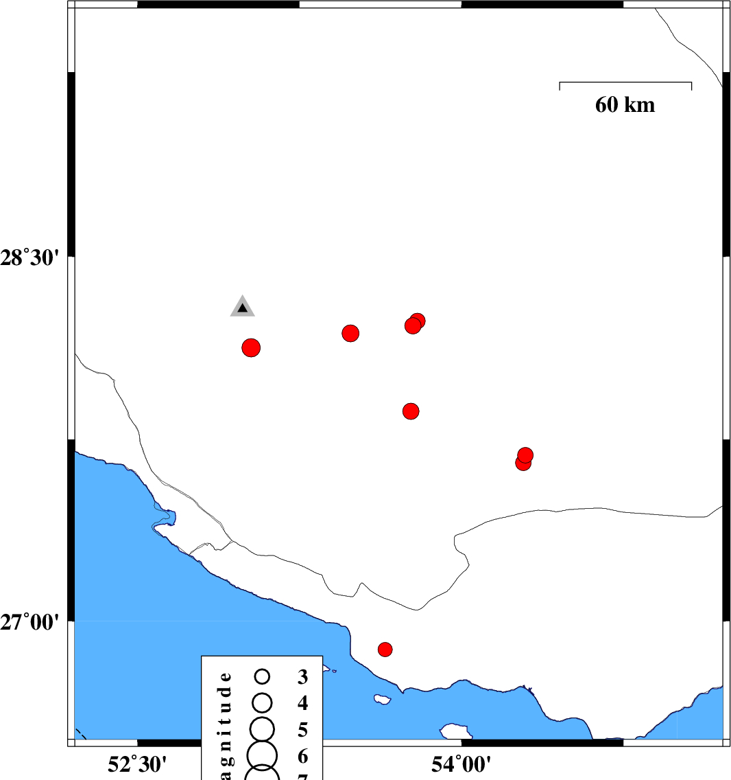 | 2014/10/04 | 21:13:20.0 | 00:43:20.0 | 27.98 | 53.7 | 16 | ML3.3 | Fars Province, 60 km South-East of Jahrom | ||