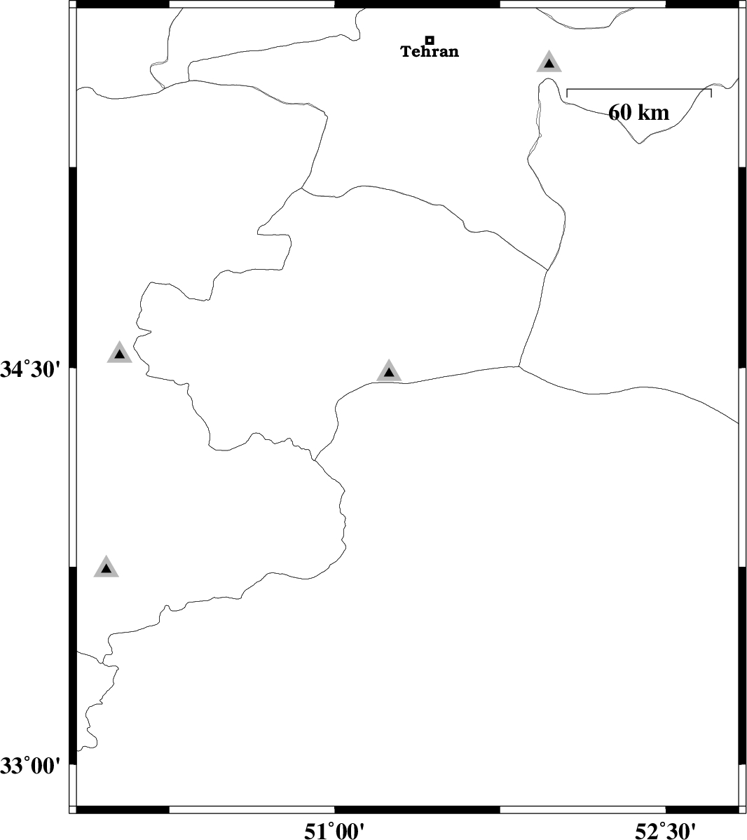 2014/09/05 | 08:36:09.8 | 13:06:09.8 | 34.61 | 50.44 | 15 | ML3.4 | Qom Province, 40 km West of Qom |