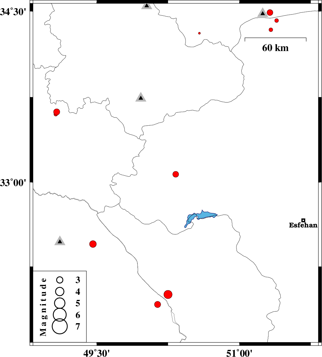 2014/10/02 | 13:51:31.5 | 17:21:31.5 | 34.42 | 51.39 | 8 | ML1.9 | Esfahan Province, 40 km North of Aran va bidgol | ||
