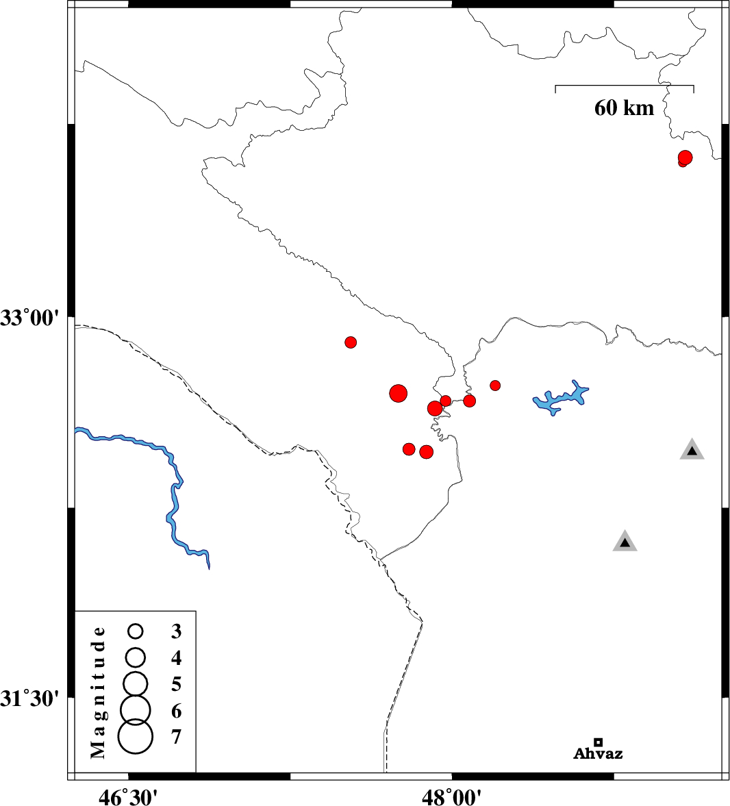 | 2014/10/10 | 19:53:37.4 | 23:23:37.4 | 33.6 | 49.07 | 15 | ML1.8 | Lorestan Province, 13 km North of Dorud | ||